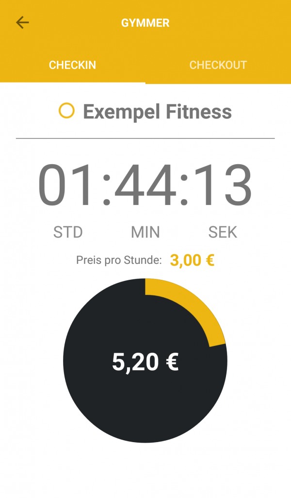 Hast Du ein Gym gefunden das Dir gefällt? Dann mach Dich auf den Weg. Vor Ort sagst Du bescheid, dass Du mit GYMMER trainieren möchtest, dann bekommst Du vom Personal einen Checkin Code, den Du einfach in der App einscannst, indem Du auf „CHECKIN“ klickst und Deine Kamera auf den Code richtest. Du kannst auch in der Übersicht am oberen Bildschirmrand das QR-Code Symbol anklicken, um schneller zum Checkin zu kommen. Nach dem Checkin läuft Dein Training und es wird Dir jederzeit angezeigt, wie lange Du bereits trainierst und was Dich das Training kostet. Falls Du Dein Smartphone zum Musikhören oder Instagrammen brauchst, kannst Du die App natürlich auch schließen, sie läuft im Hintergrund weiter.